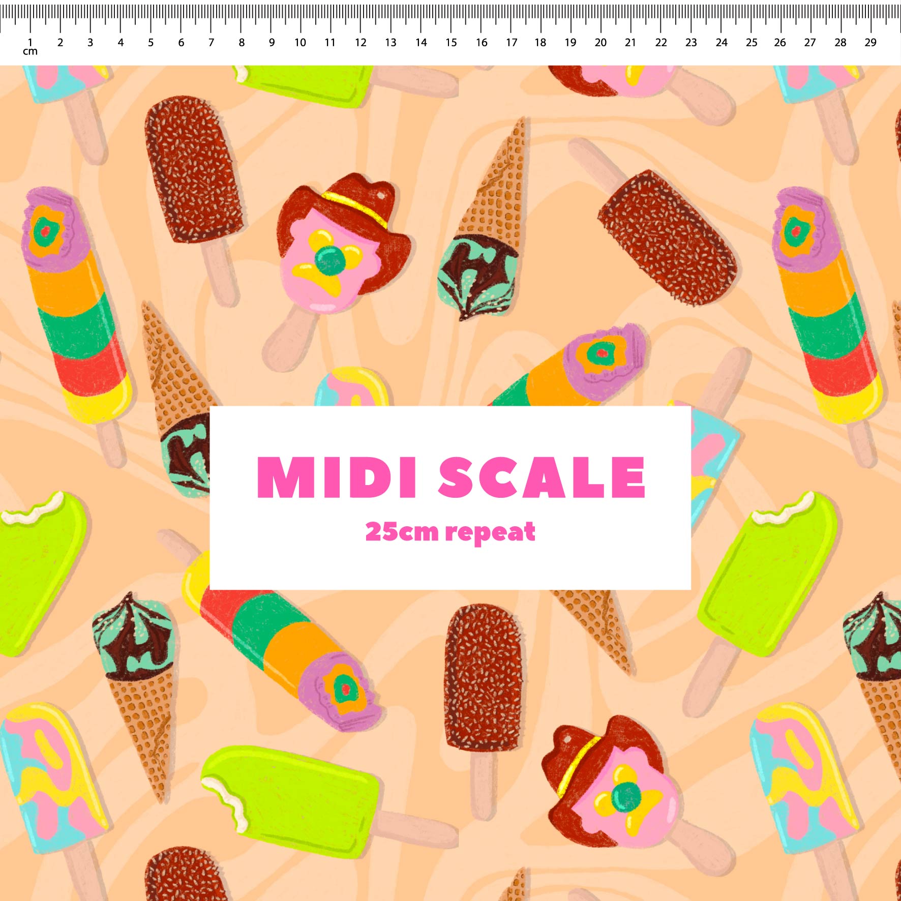 Customise all our gorgeous fabric prints for your project! Simply choose from 3 different scales and 21 different fabric bases!